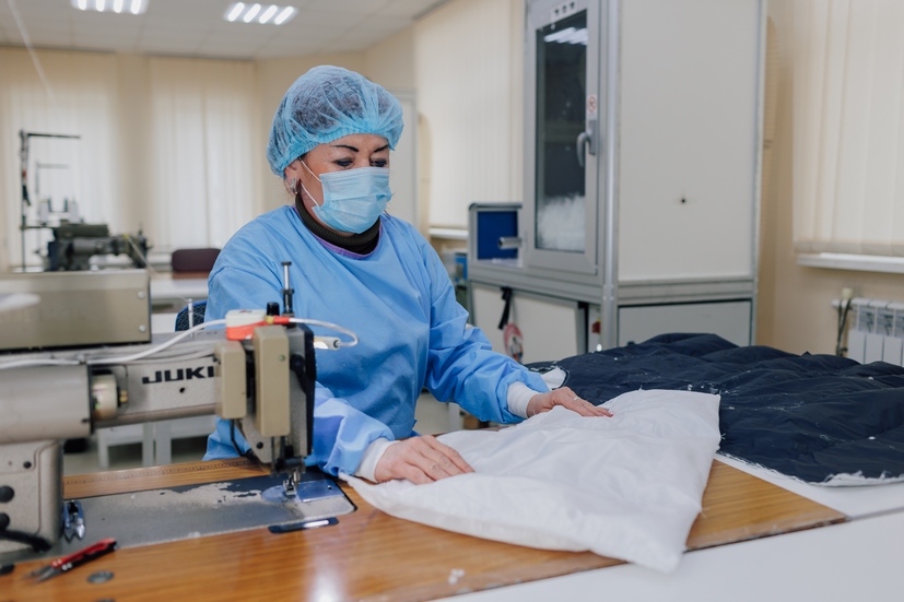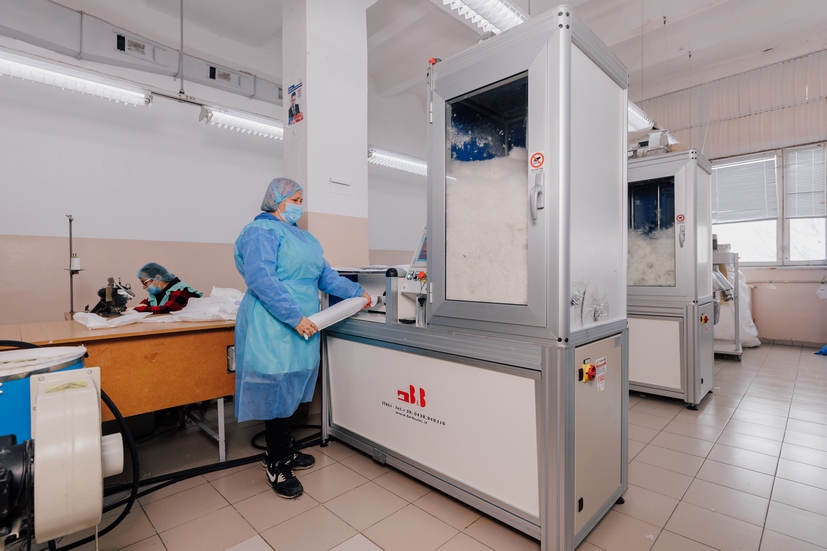 Производство оснащено шестью пухо-набивочными машинами итальянского производства.