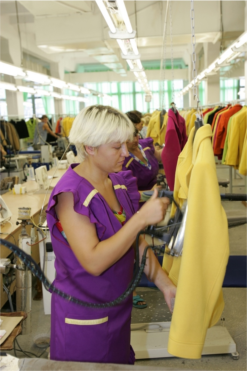 Изделия, попадающие на этап влажно-тепловой обработки, проходят финальную шестую ступень проверки качества продукции на предприятии и далее оснащаются навесными ярлыками, стикерами и чипами, упаковываются в короба, либо отгружаются на рейлах согласно инструкциям клиентам.