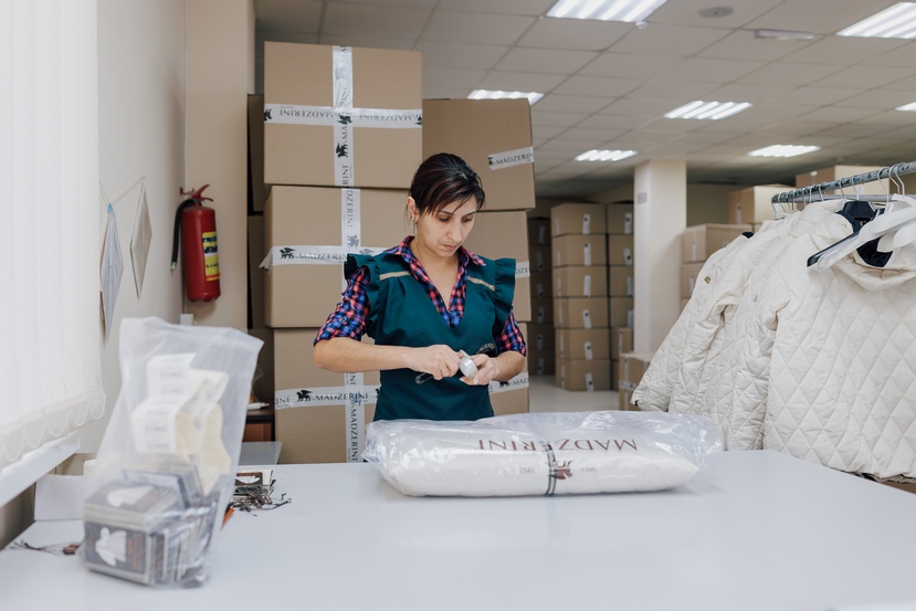 Изделия, попадающие на этап влажно-тепловой обработки, проходят финальную шестую ступень проверки качества продукции на предприятии и далее оснащаются навесными ярлыками, стикерами и чипами, упаковываются в короба, либо отгружаются на рейлах согласно инструкциям клиентам.
